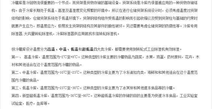 常規(guī)除濕機(jī)和管道除濕機(jī)均有升溫型、調(diào)溫型、降溫型三種功能類型,其中升溫除濕機(jī)主要用于除濕,無制冷功能,故適用于無溫度要求的除濕場所;調(diào)溫除濕機(jī)集除濕、制冷功能于一身,且制冷能力可調(diào),故特別適用于熱負(fù)荷變化較大的除濕場所。降溫除濕機(jī)在除濕的同時有制冷功能,但制冷能力不可調(diào),故適用于熱負(fù)荷較大,對相對濕度無要求的除濕場合。